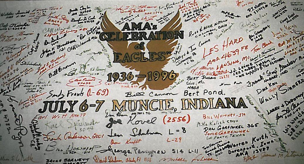 “Celebration of Eagles,” July 6-7, 1996 - The AMA hosted its 60th anniversary on the Muncie site, dubbing the two-day party a “Celebration of Eagles.” A reception was held in the Museum on Friday, then on Saturday fun flying started. Right after the celebration, the Nats commenced on-site. This was the first time the outdoor Nats was held exclusively at the Muncie location.