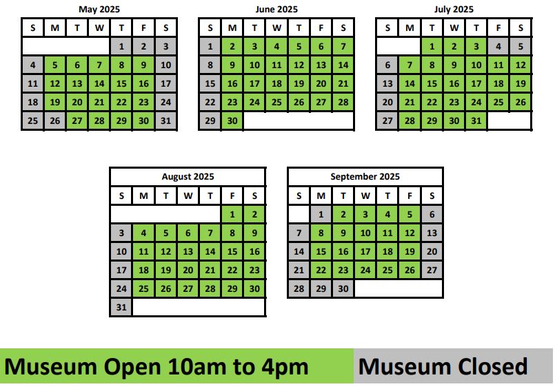 The Museum is open! Scroll down to see our 2025 Museum Hours of Operation Calendar.